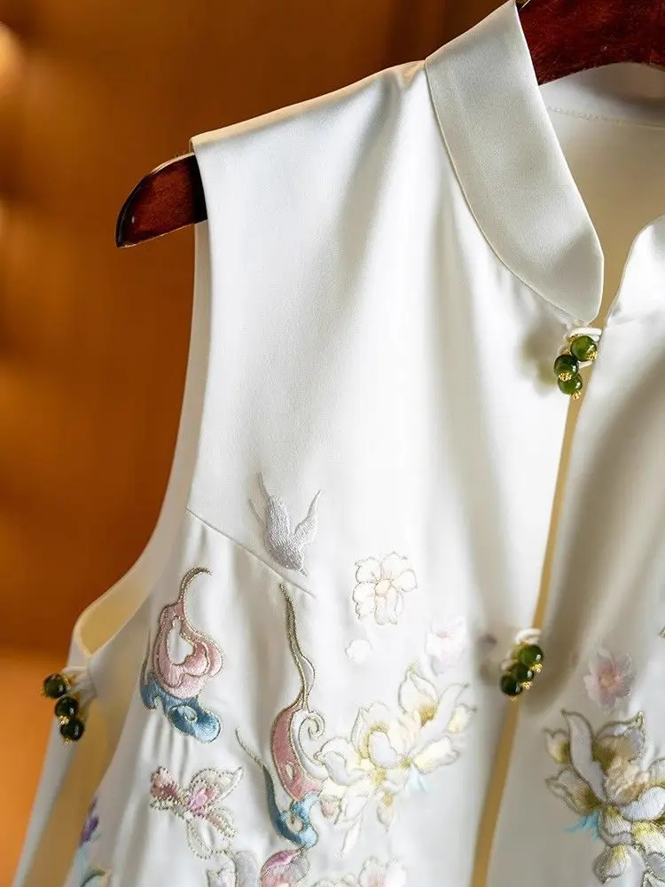 Embroidered Satin Silk Vest Women's Stand Neck Ethnic Style Embroidery Sleeveless Top Chinese National Top