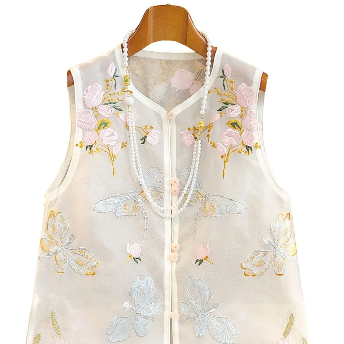 Embroidered Vest Women Chinese Style Vintage Vest Sleeveless Retro Buckle Tops Female Summer New Fashion