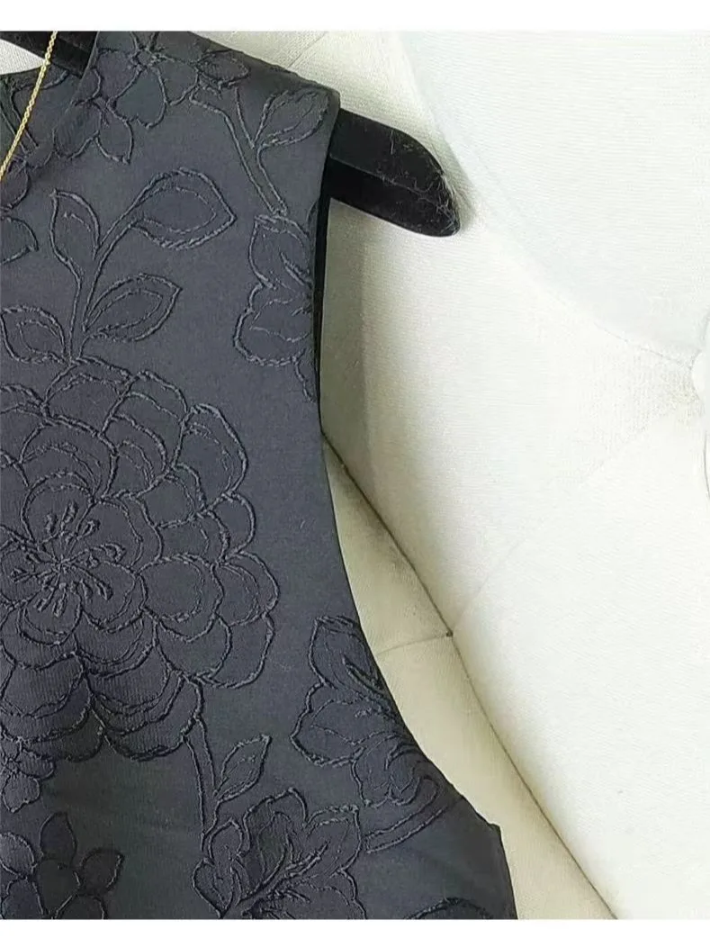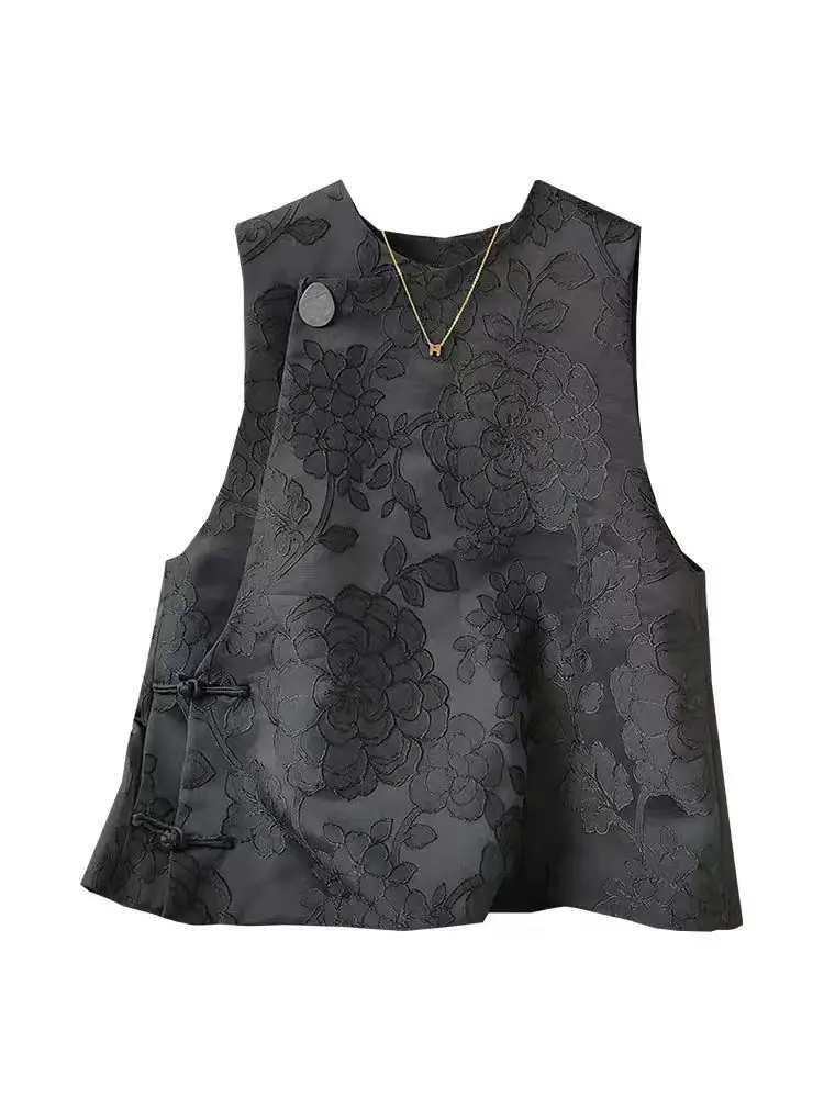Floral Embroidery Jacquard Vest Women Black Sleeveless Embroidered Tops Chinese Style Ethnic Vintage Tang Vest