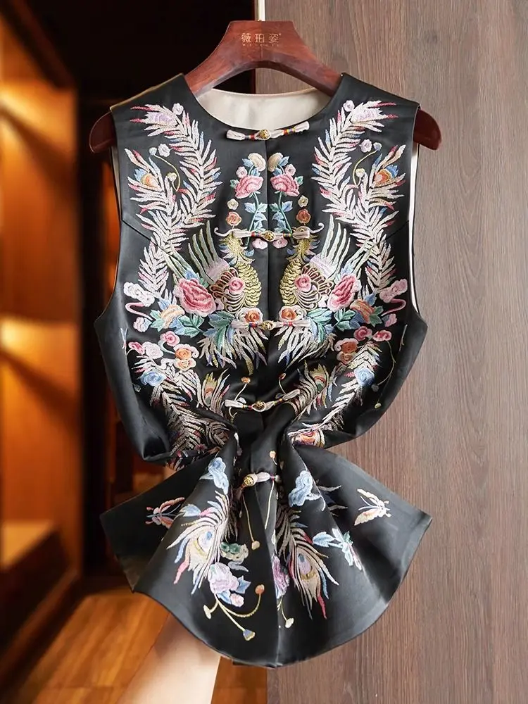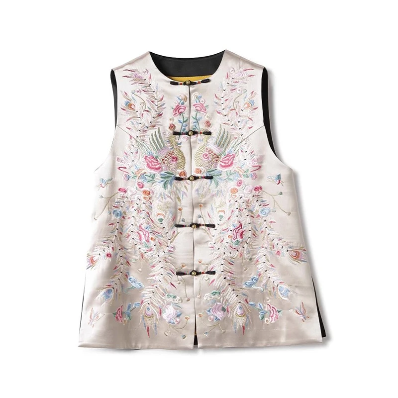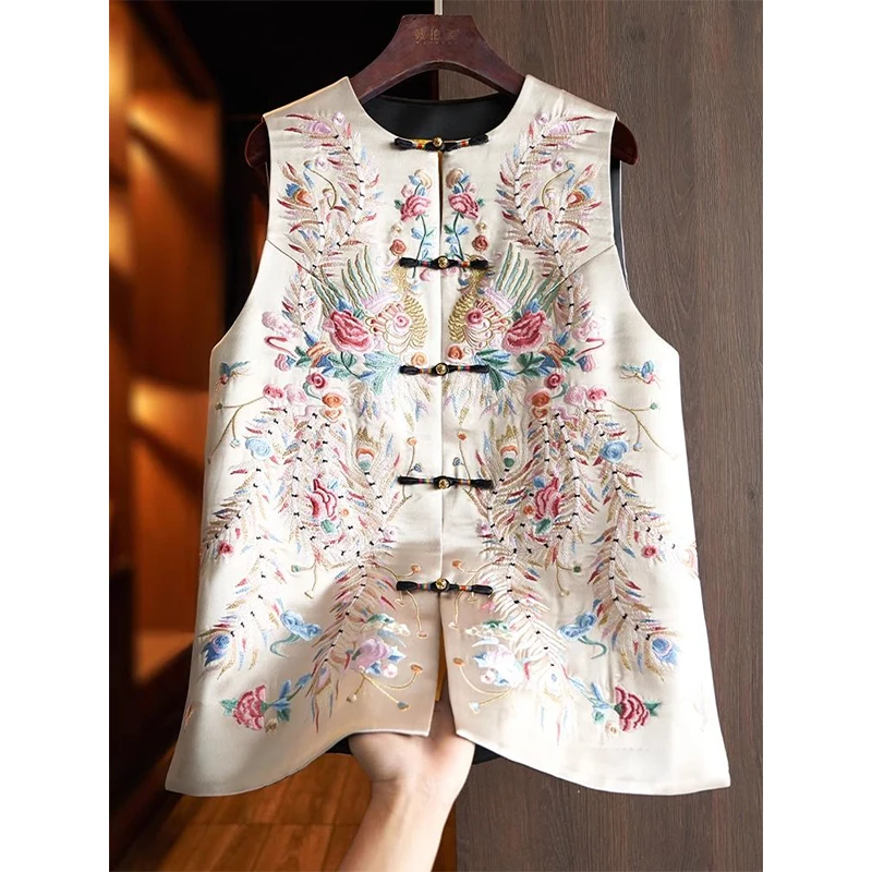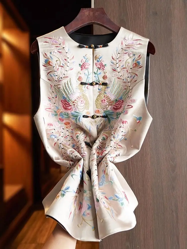 Floral Embroidery Vest Women Sleeveless Embroidered Retro Tops Chinese Style Ethnic Vintage Tang Vest