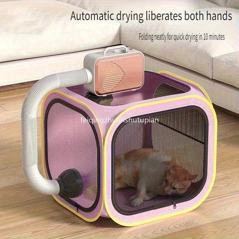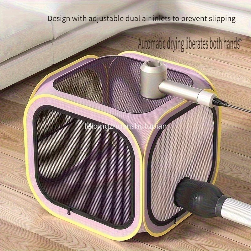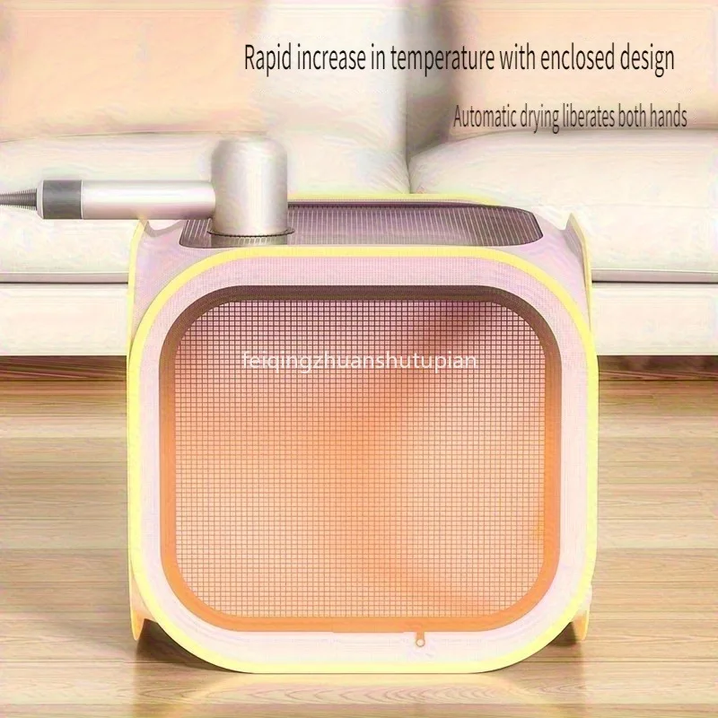 Transform pet grooming with this innovative folded drying box designed for cats and small pets. The enclosed design contains moisture and heat efficiently while your pet dries, reducing stress compared to traditional blow-dryers. Features a compact, foldable structure for convenient storage and portability. The mesh panels provide visibility and airflow, ensuring your pet stays comfortable throughout the drying process. Perfect for post-bath grooming or quick touch-ups at home. Simply unfold, place your pet inside, and activate the drying function for hands-free convenience. An essential tool for pet owners seeking a safer, quieter alternative to standard blow-drying methods.