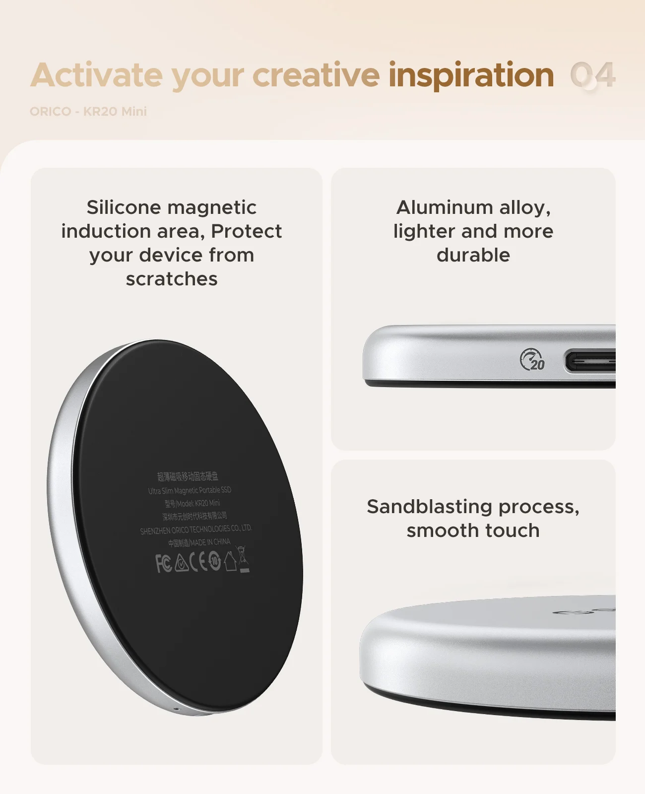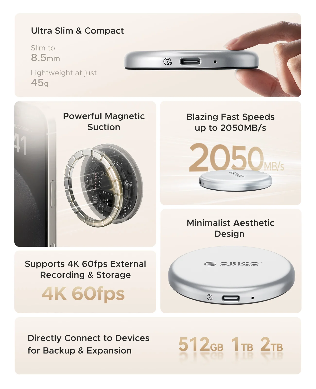 ORICO KR20Mini Magnetic External SSD for iPhone 17 16 15 Pro/Max ProRes 2000MB/s 4K ProRes HDR Record and Store