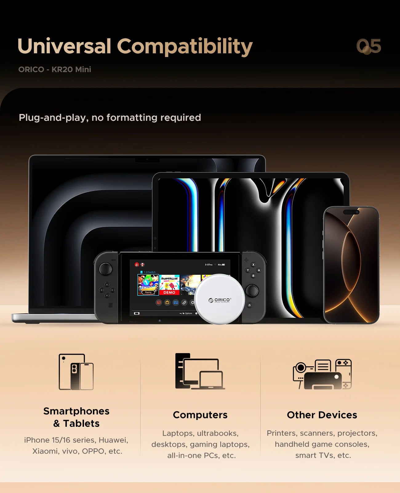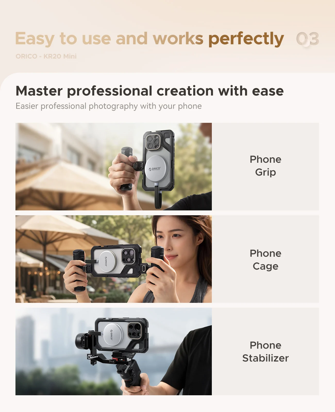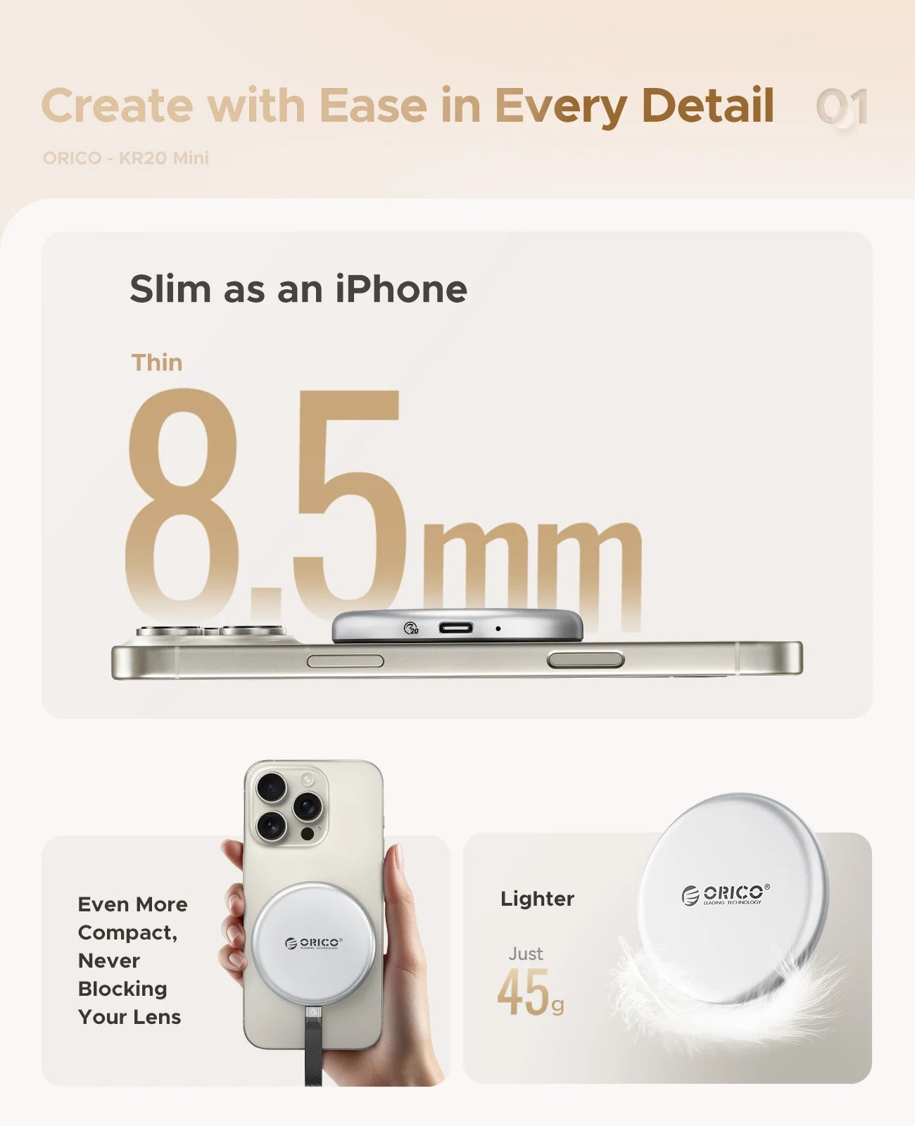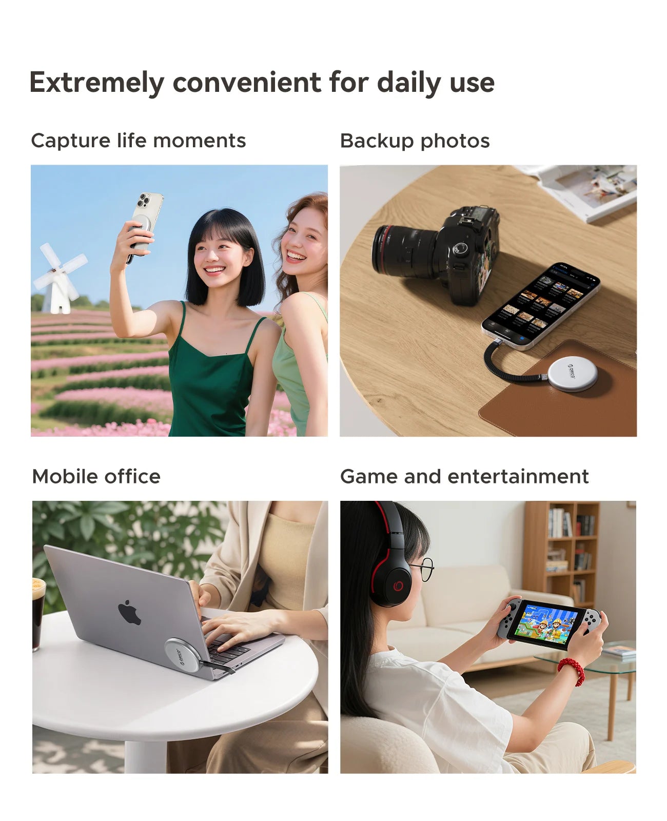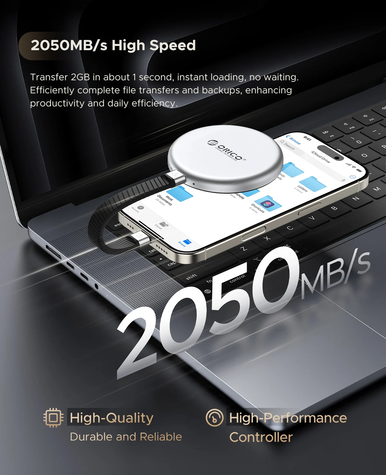 The ORICO KR20Mini brings professional-grade storage to your iPhone workflow. This magnetic external SSD delivers 2000MB/s transfer speeds, enabling seamless 4K ProRes and HDR recording without interruption. Compatible with iPhone 17, 16, and 15 Pro models, it attaches magnetically for secure, cable-free operation. Perfect for videographers and content creators who demand reliable, high-capacity storage for demanding video formats. Compact design doesn't compromise on performance or durability.