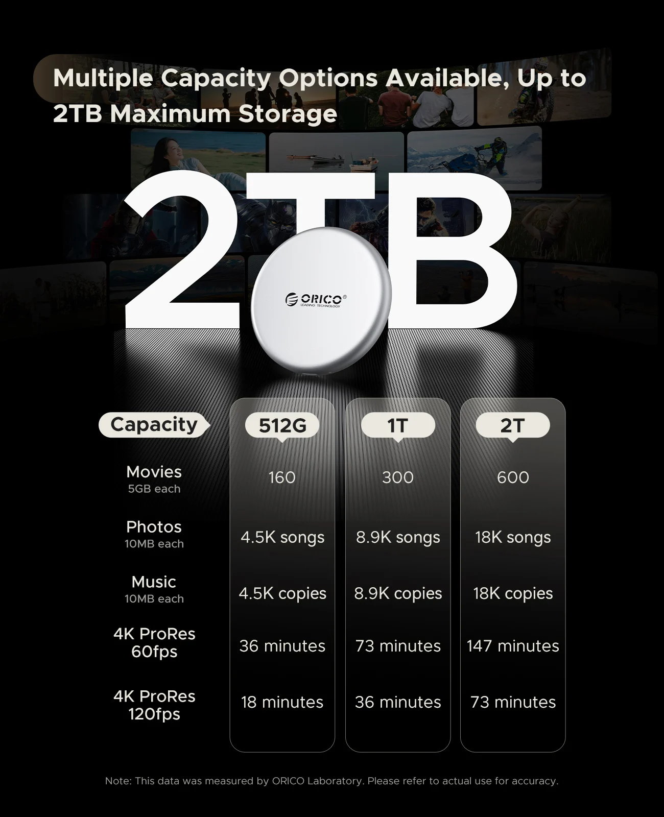 ORICO external solid state drives supports 4K 120 fps ProRes HDR video recording of iPhone 16 Pro/Pro Max. Save as you record, edit on disk, no need for a second transfer.