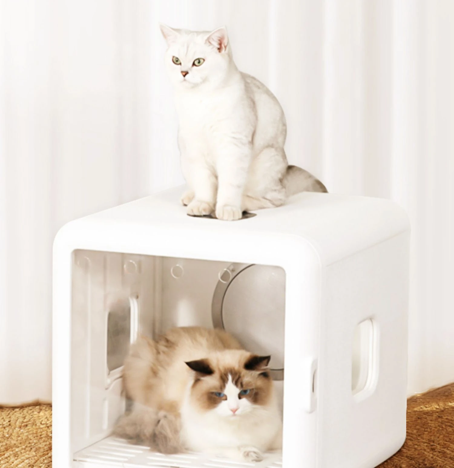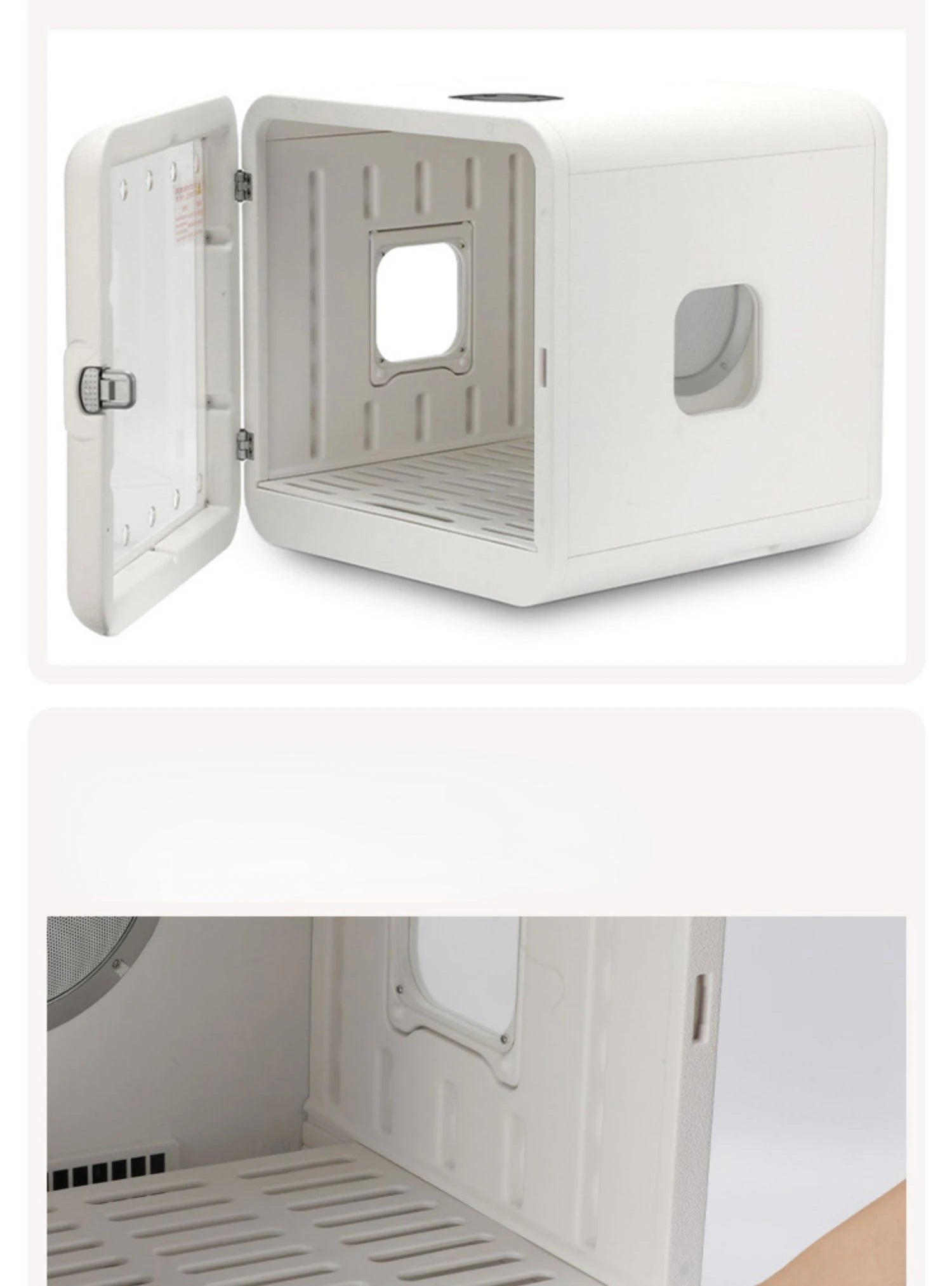 Professional pet grooming made efficient with this advanced drying system. Engineered for both dogs and cats, this enclosed dryer box delivers consistent warm air circulation from all angles, reducing drying time significantly. The whisper-quiet operation minimizes stress for sensitive pets, while the generous capacity accommodates various sizes. Ideal for grooming professionals and dedicated pet owners seeking salon-quality results at home. Features rapid drying technology without compromising coat health.
