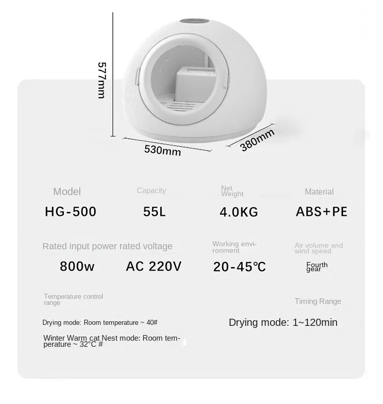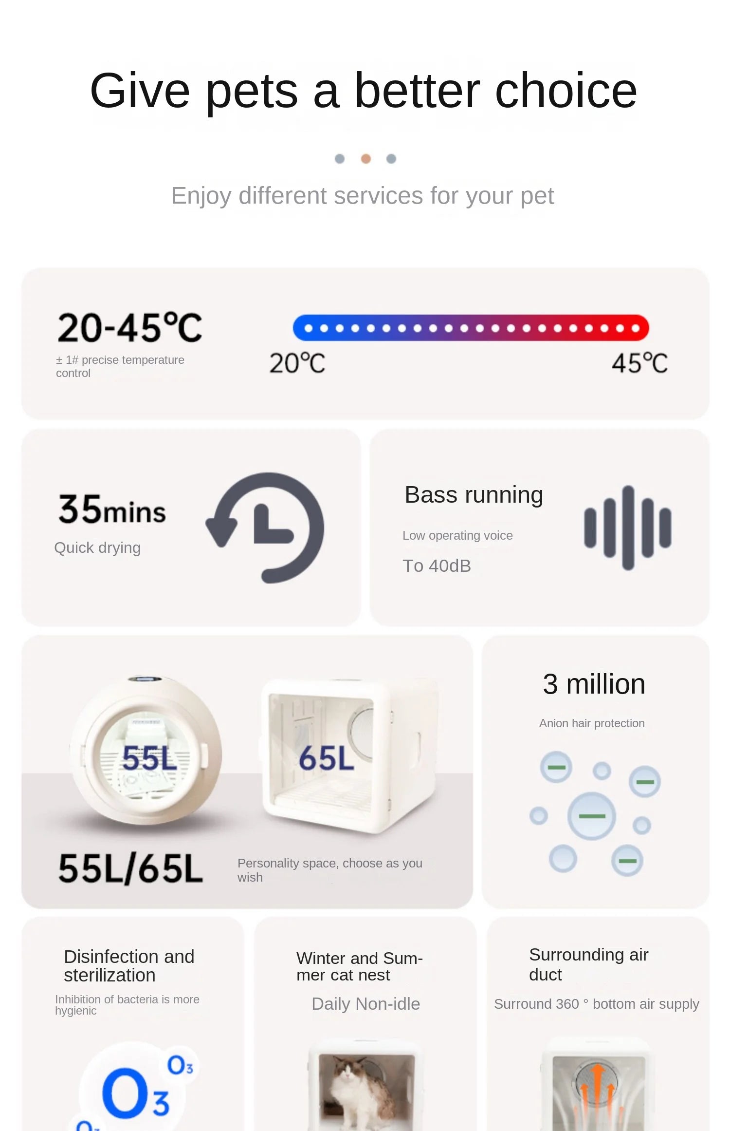 Pet Dryer Dog Hair Dryer Box for Pet Grooming Super Quiet Cat Hair Dryer Capacity Quick Drying Blower 360 Degrees Warm Air