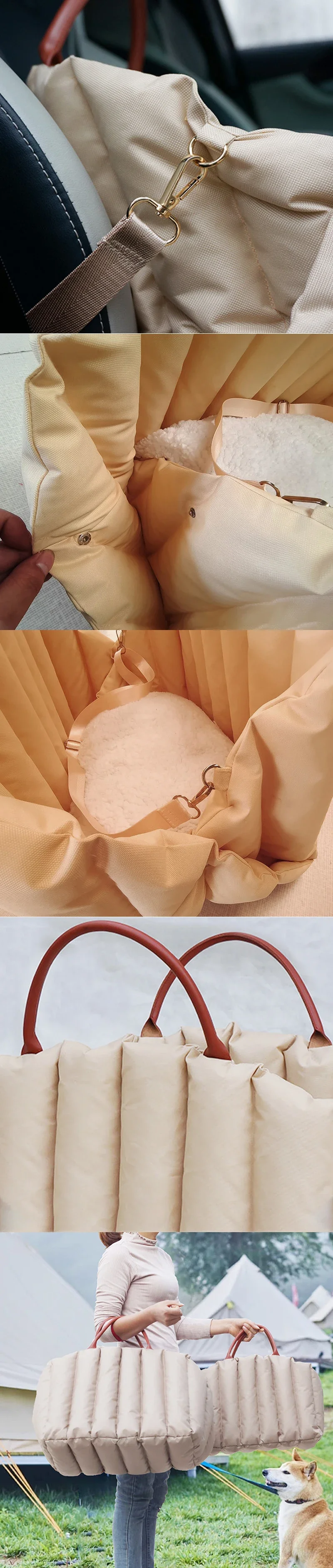Designed for discerning pet owners, this versatile carrier combines luxury aesthetics with practical functionality. The removable, insulated design provides winter warmth while maintaining breathability for year-round comfort. Featuring a secure safety seat attachment, it transforms from handbag to vehicle restraint effortlessly. The durable construction accommodates both small dogs and cats, while the portable design ensures convenient travel whether commuting or exploring outdoors. Premium materials and thoughtful engineering make this an essential accessory for pets requiring both style and protection during transit.