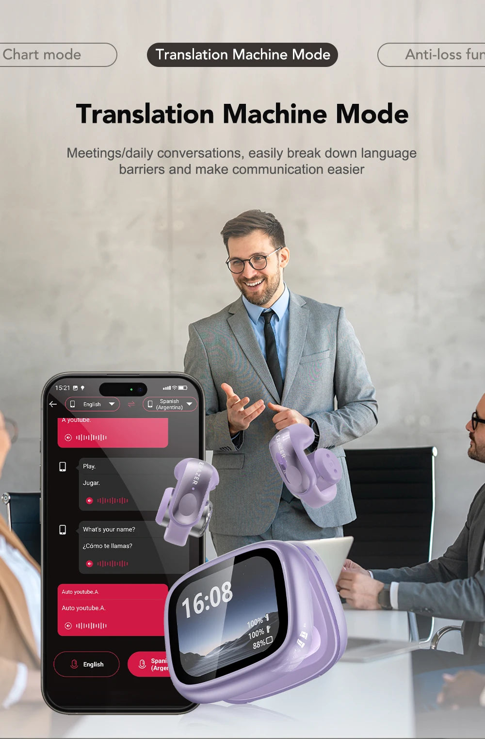 Experience seamless communication and audio clarity with the Translator ERAZER XF28. These open-ear true wireless earbuds feature Bluetooth V6.0 for stable, low-latency connectivity. Designed for professionals and travelers, they deliver real-time translation capabilities through a dedicated app, making global conversations effortless. The open-ear design ensures comfort during extended wear while maintaining situational awareness. Perfect for office calls, travel, ASMR content, and hands-free communication. Enjoy premium sound quality without compromising on practicality or comfort.