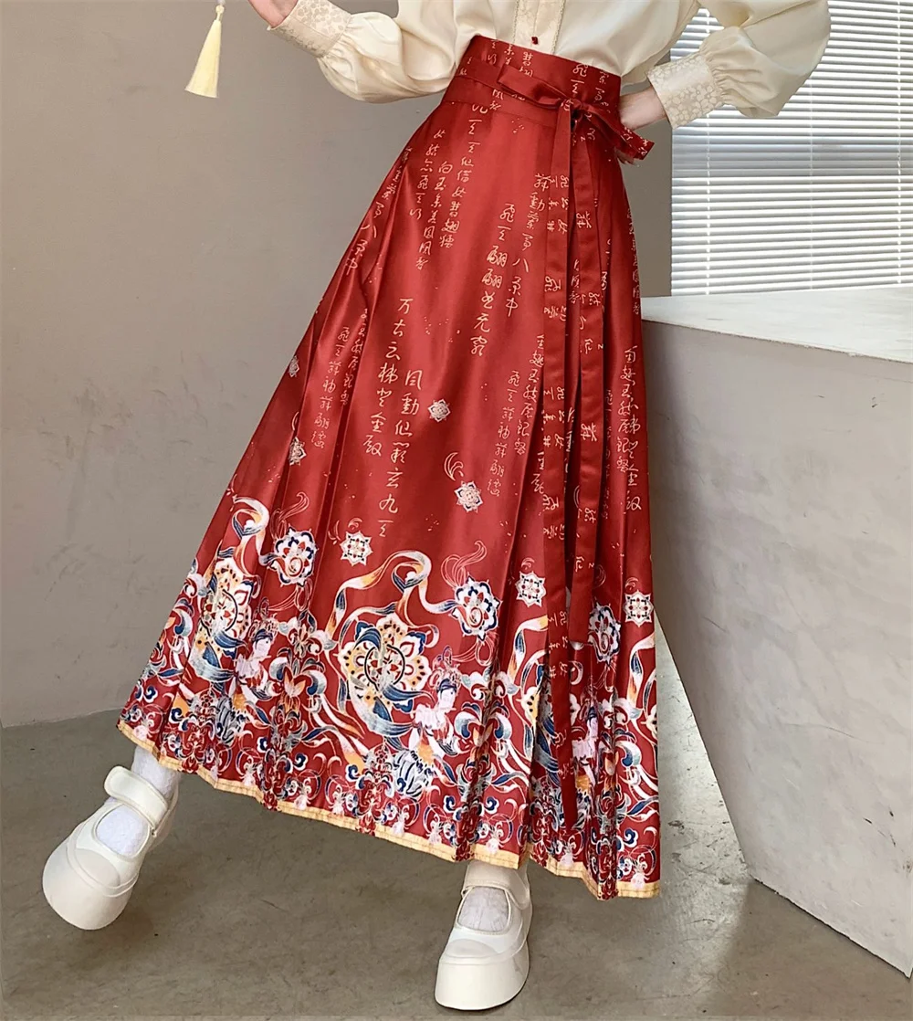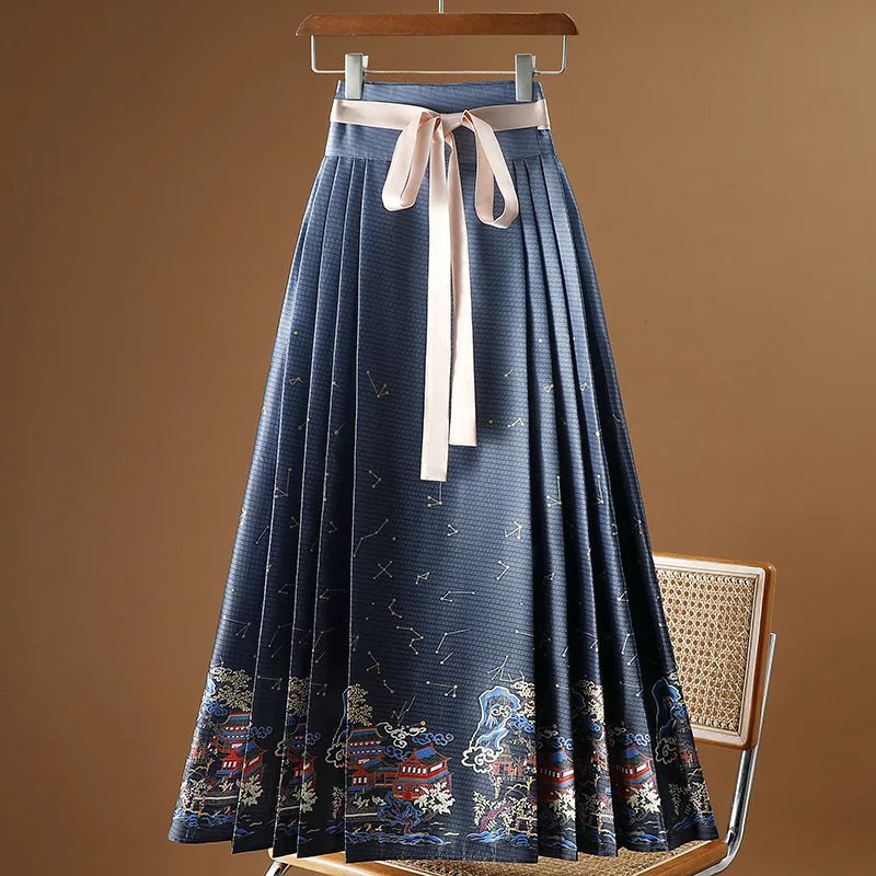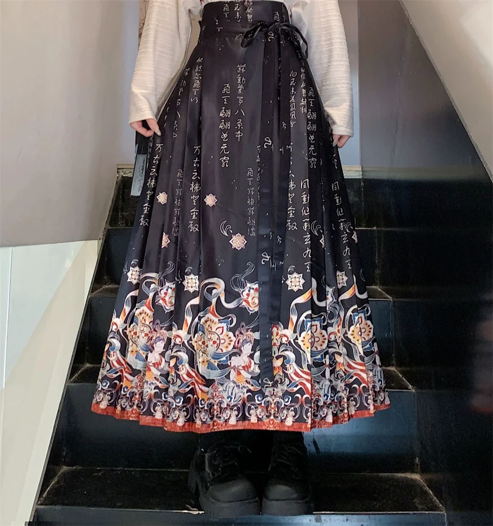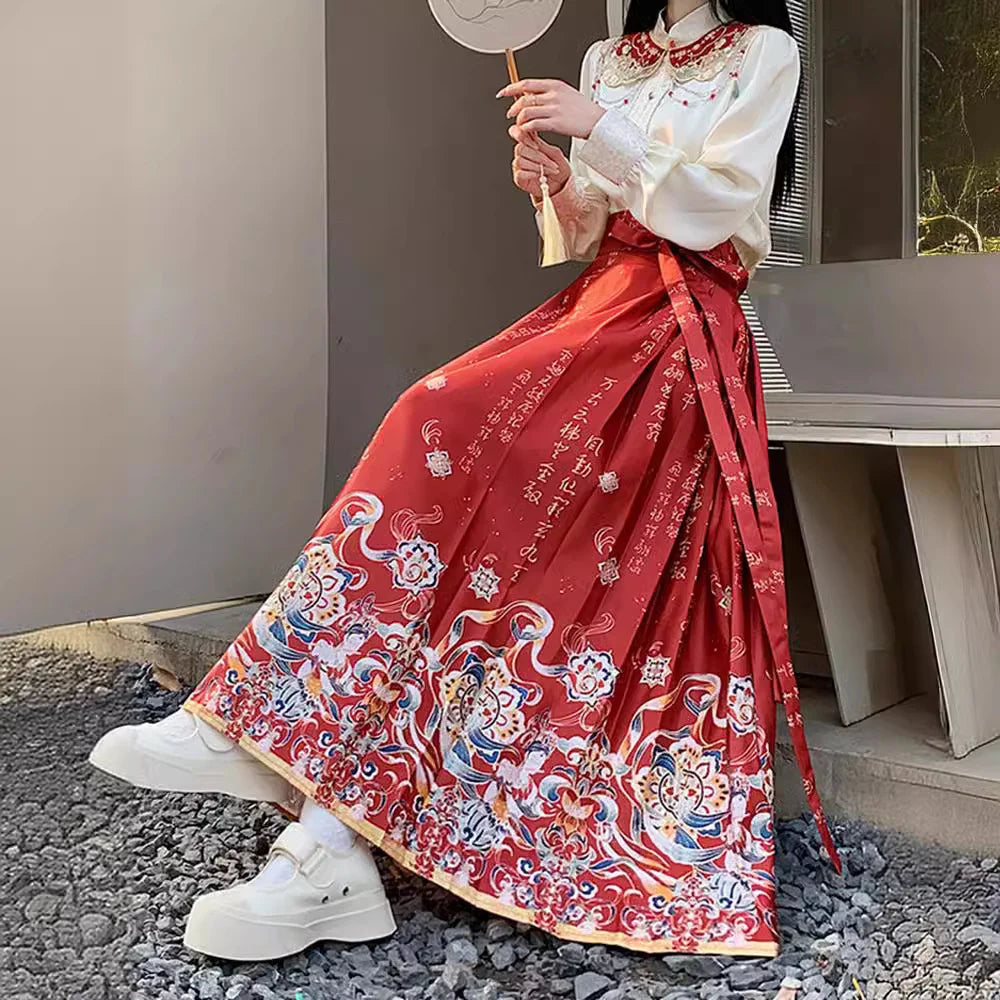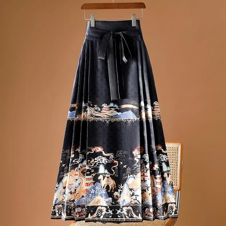 Vintage Maxi Chinese Style Horse Face Skirts for Women Saia One-piece Long Hanfu Pleated Skirt Woman Clothing Faldas Harajuku
