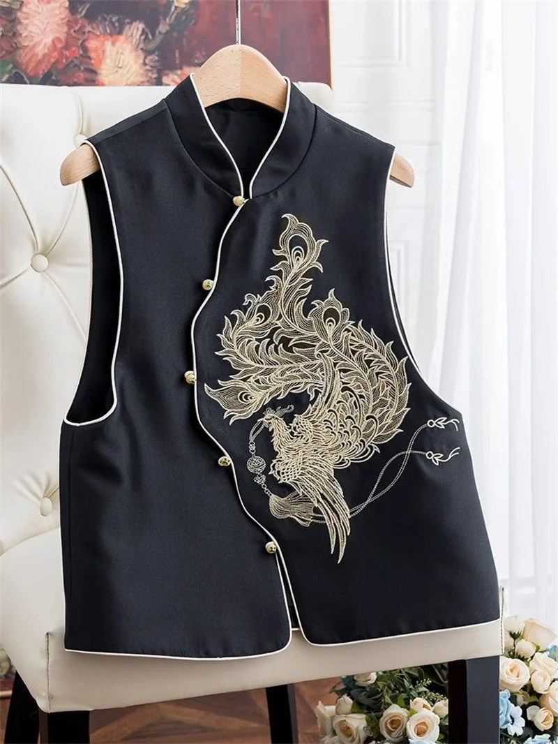 Women's Vest Women's Jackets Chinese Style Golden Phoenix Embroidered Spring and Autumn Vest Women's Single-breasted Vest Coat
